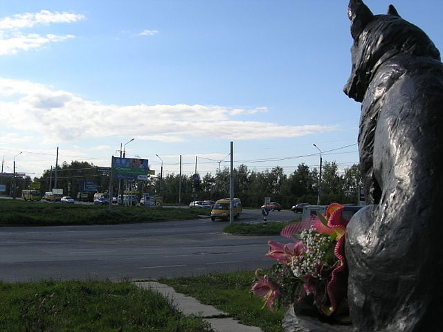 The only survivor of a car crash, the dog Kostya, a German shepherd, left behind when his deceased owners were moved from the crash scene. People start to notice that dog, which was always on the same spot looking on the street and waiting. After some time, people built dog houses and tried to adopt him but with no success, Kostya didn’t want to leave his post hoping to see once more his dead master. In 2002, after 7 years waiting, he was found dead in the woods. The bad news and the story touched the citizens, which made and installed a billboard with the saying “Dog, teach us love and devotion”. In 2003, a bronze sculpture with Kostya’s head looking east was erected on the same spot the dog used to be.