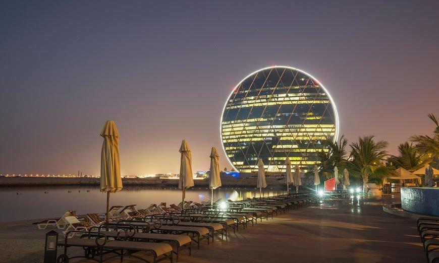 Completed in 2010, the Aldar HQ building certainly deserves a visit. You won’t see many buildings around it, and surrounded by the sea, this unique circular-shaped piece of engineering can be noted by a far distance, especially if you are driving to the airport or the Yas Island.