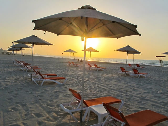 The Corniche beach extends along Corniche Road from near the Hilton Hotel to beyond Al Khaleej Al Arabi Street, where you’ll find its main entrance. During the week you can usually find a beach umbrella, but during the weekend they may all go quickly. You can’t swim out very far; floating fences keep you within 40 meters of the beach, and there are plenty of lifeguards around.